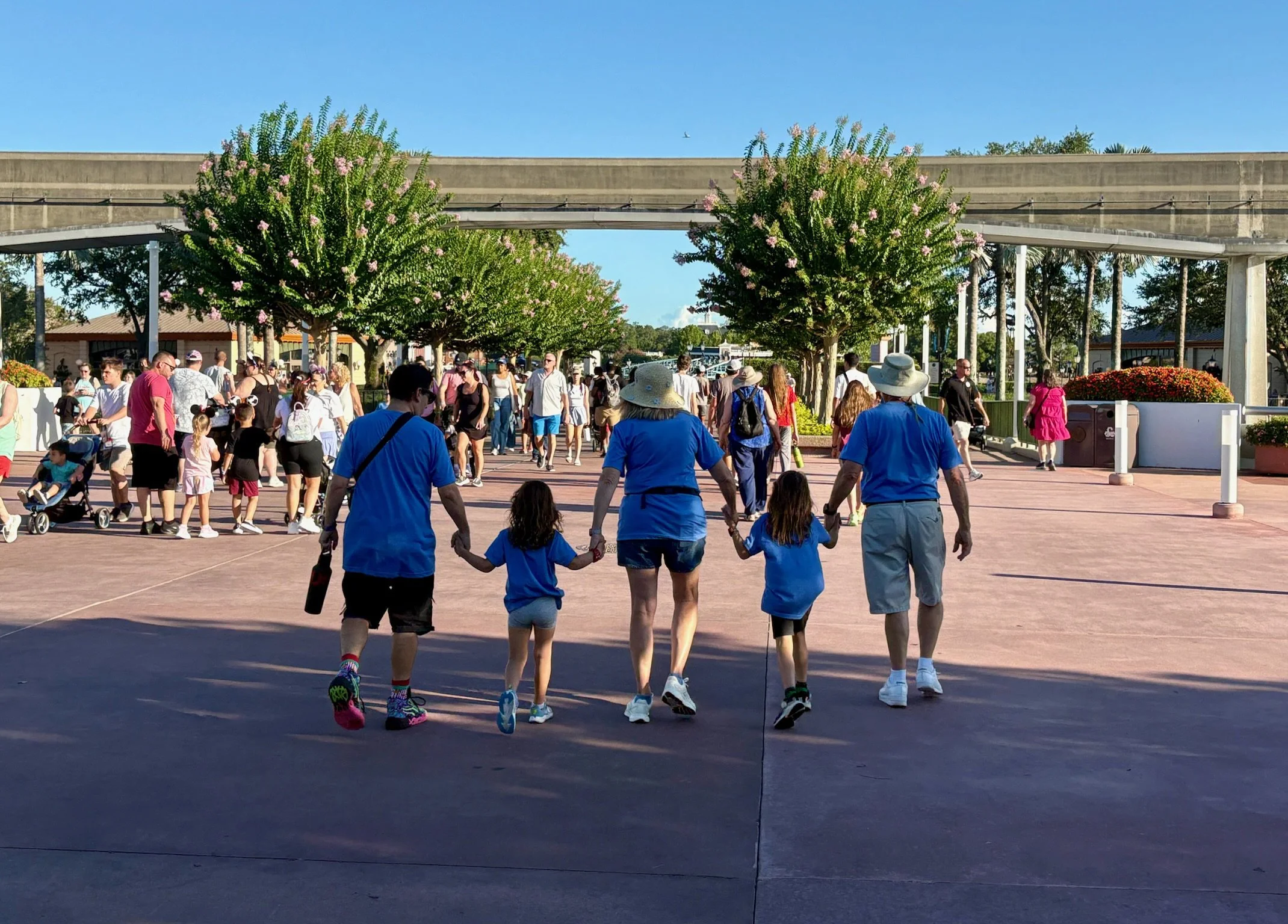 Coordinate your crew. Wearing color-coordinated outfits is a practically perfect way to spot your group in the busiest (and happiest) place on Earth. Bonus tip: Matching custom shirts adds a personal touch and makes for super cute photo ops!